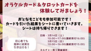 3月に行われる「カルチャーまつり」にオラクルカード体験会で参加します